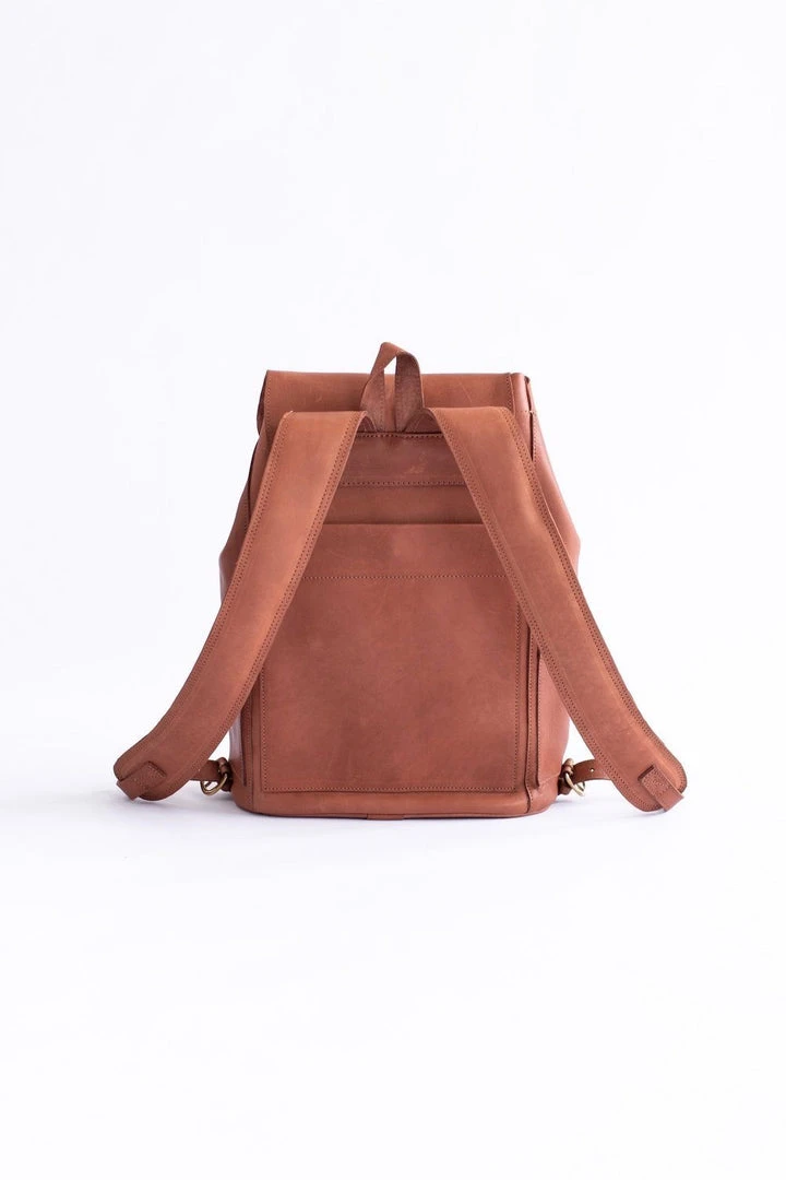 Beauty meets function in the Chestnut Adelaide Backpack, a generously sized, chic backpack for work, travel, and everyday use. Handcrafted by artisans using eco-friendly, vegetable tanned leather. Featuring a padded laptop pocket, two interior and exterior pockets, a back safety pocket, and trigger-hook closure.