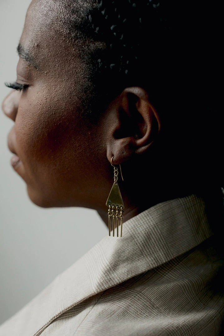 Lightweight, delicate, and fun. Just the right amount of fringe to give a little movement. Handcrafted from brass with love in Kenya.