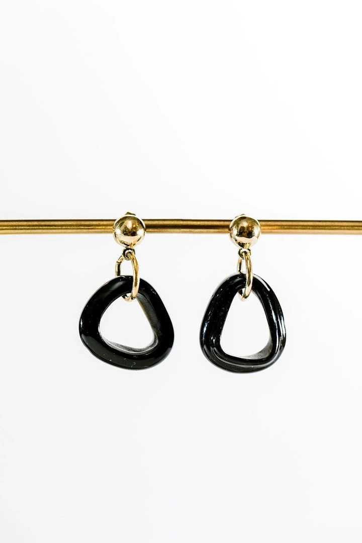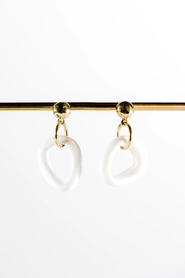 These organically shaped earrings resemble the naturally shaped pieces of sea glass you might find on the beach – no single earring is exactly alike. Available in six colors.
