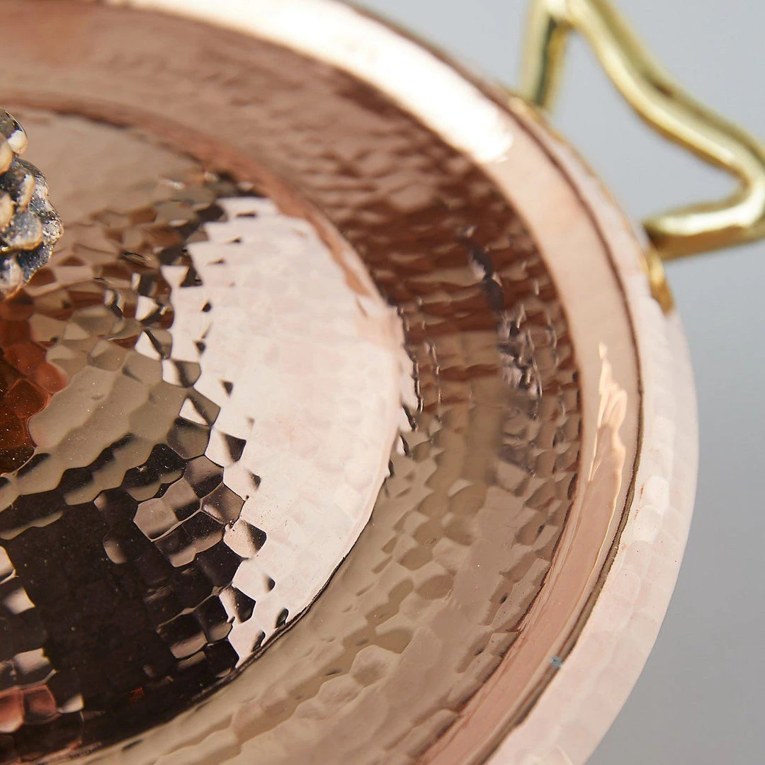 • Crafted from 100% recycled copper, cast bronze handles, lined in tin