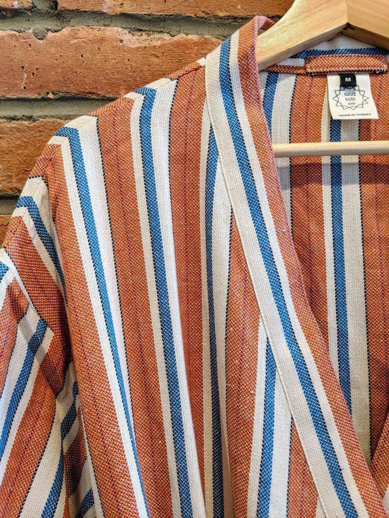 The Terra Robe is a modern spin on the classic Turkish towel that makes a lightweight bathrobe or a luxurious garment to wear while relaxing at home.