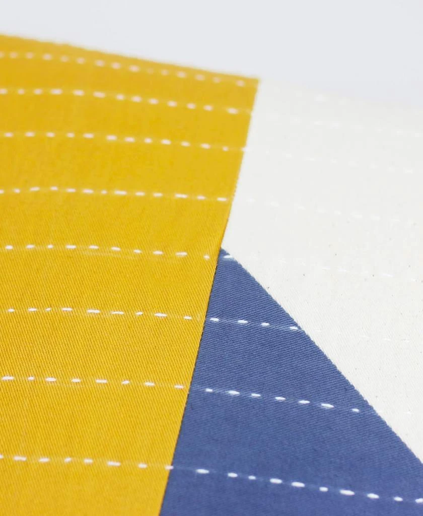 The Asha throw pillow features vibrant geometric patchwork with contemporary embroidered accents. Colorblocks of contrasting patterns make it a vibrant addition to any space. Add a touch of visual luxury to your home decor with this hand-stitched organic cotton pillow, a beautiful companion to your Asha quilted bedspread and lumbar pillow.