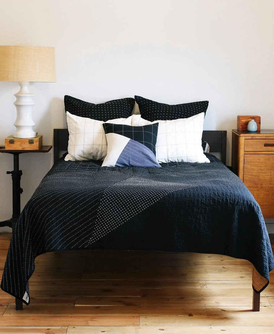 Made with organic cotton, this embroidered pillow features a fun, geometric grid-stitch accent pattern. Its neutral design makes it easy to pair with your favorite bedspreads all year long. This timeless pillow is a simple yet beautiful addition to any of Anchal’s quilt bedding.