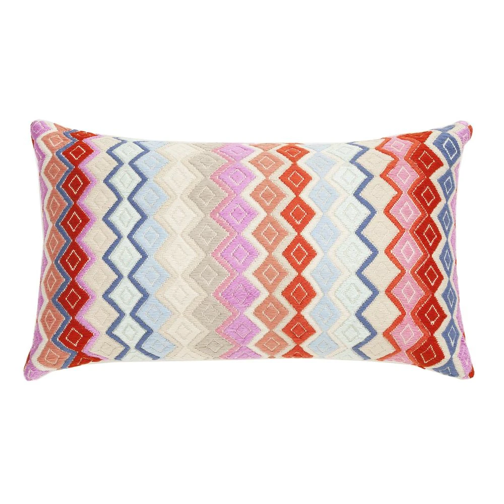 This pillow was handwoven on a back-strap loom by artisans from the village of Nahuala, Guatemala.