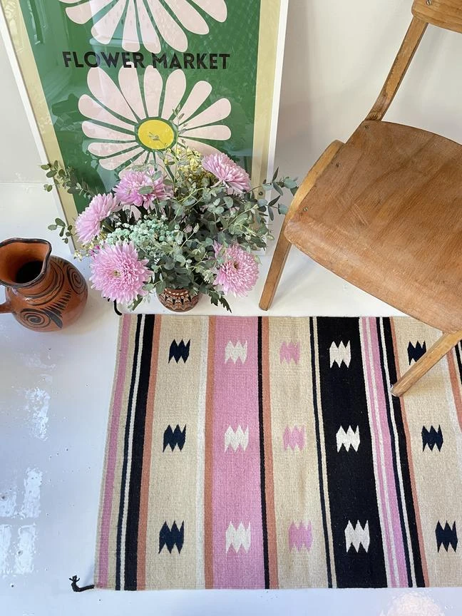 This flat weave, handwoven rug is made in Teotitlán del Valle, a small rug-making town about 40 minutes outside of Oaxaca City, where techniques, foot looms, and the passion for rug-making has been passed down through generations. Each rug is made one by one, woven row by row, with hand-dyed locally grown wool.