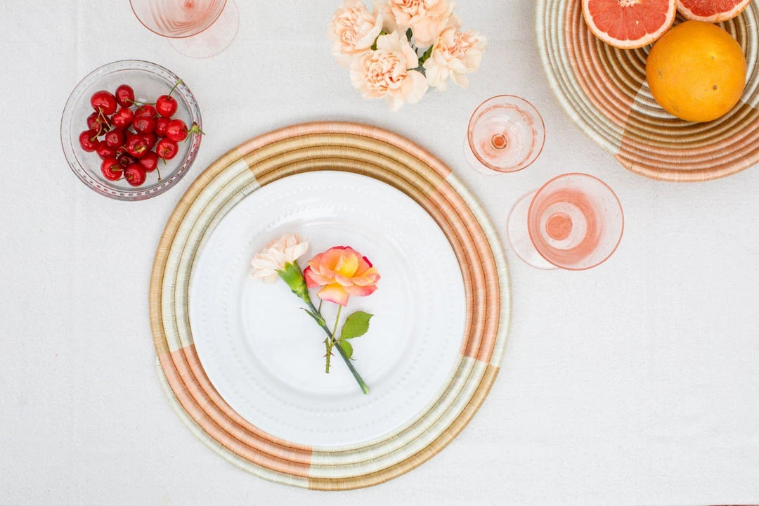 Its blush, white, and neutral pattern make the Staccato Flat Collection is the perfect addition to any home. Envision the Staccato in your entry way, on your dining table, or as a focal point for your gallery wall.