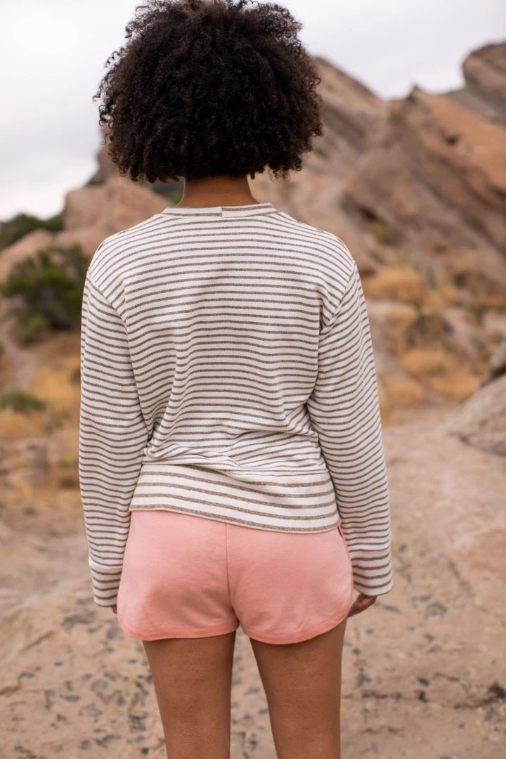 This French terry blend sweatshirt has a classic fit hitting your low waist/high hip. Fits true to size with a touch of extra room for a little more movement.