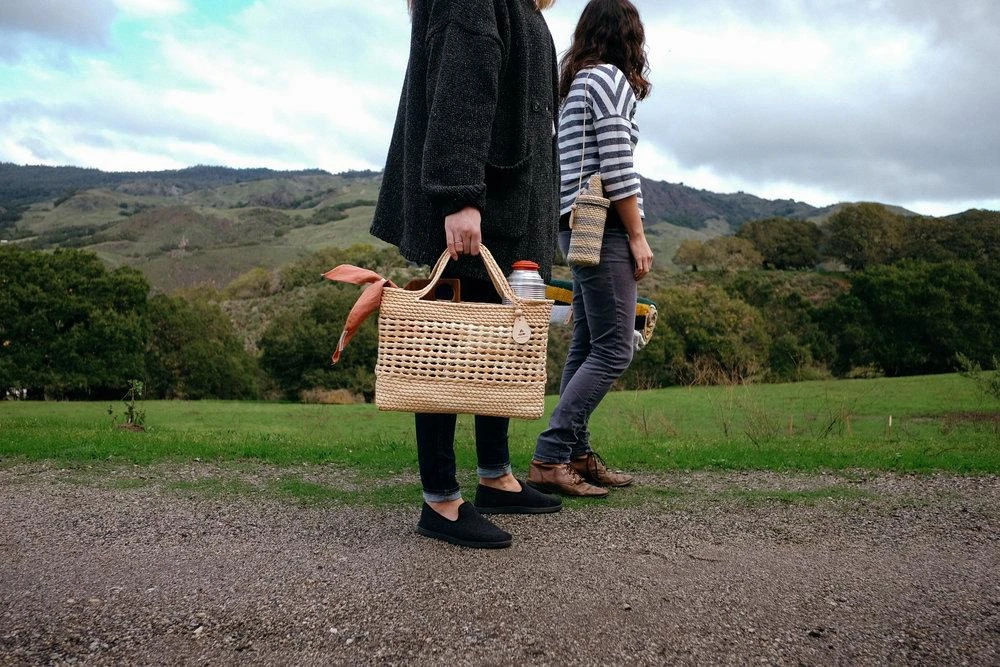 Care: Be sure not to put sharp things in them that might poke through the basket and avoid creasing or folding the bag in a way that might damage the fibers.