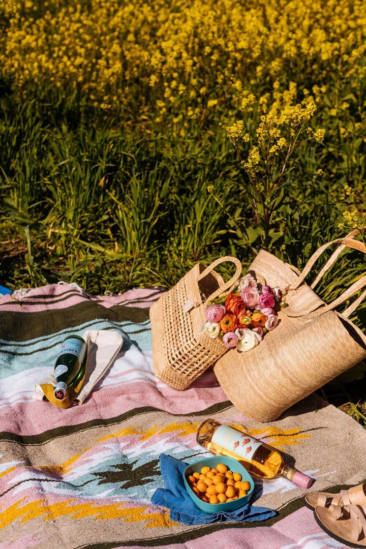 Perfect for hanging out at the park, beach, or even keeping warm around a campfire. Your new blanket comes rolled up with a handmade leather strap, making it ready for any adventure. These vibrant, modern blankets are handwoven in Mexico using upcycled yarn from the garment industry.