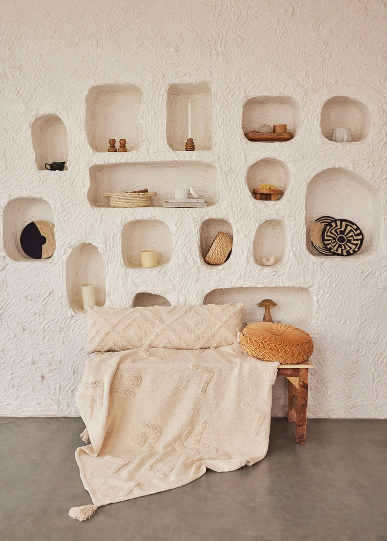 This handmade boho throw blanket features tufted detailing on a soft cotton slub base. Sure to be your favorite to wrap around your shoulders on a cold night. Tassels at the edges bring texture and whimsy to any living space. The result is a delicate, lovely throw with minimal, boho appeal.