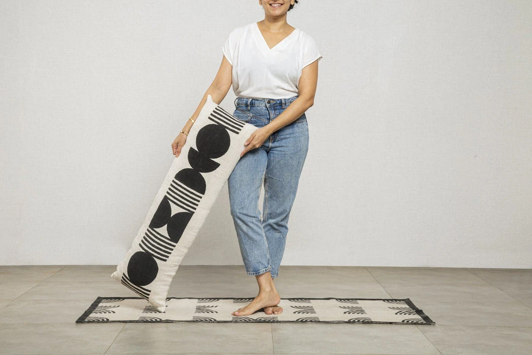 The Noir Celestial Lumbar Pillow is handprinted using blocks by master artisans, you can be assured of the level of quality and care that goes into the design. The artisans use traditional hand block printing techniques to bring you neutral, modern design to match any decor.