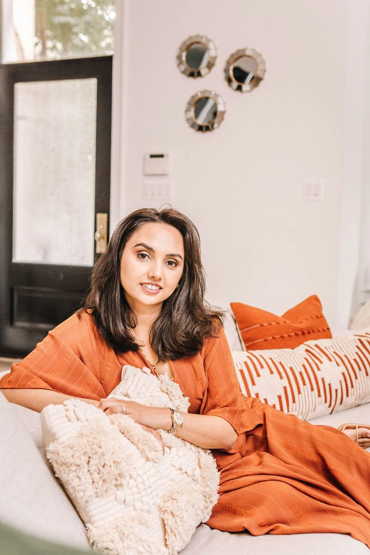 This pillow is a study in contrasts: it combines modern colors and shapes with traditional Indian weaving techniques. Handmade by master weavers on panja looms, this pillow is crafted in Panipat, India by Casa Amarosa’s partner artisans.