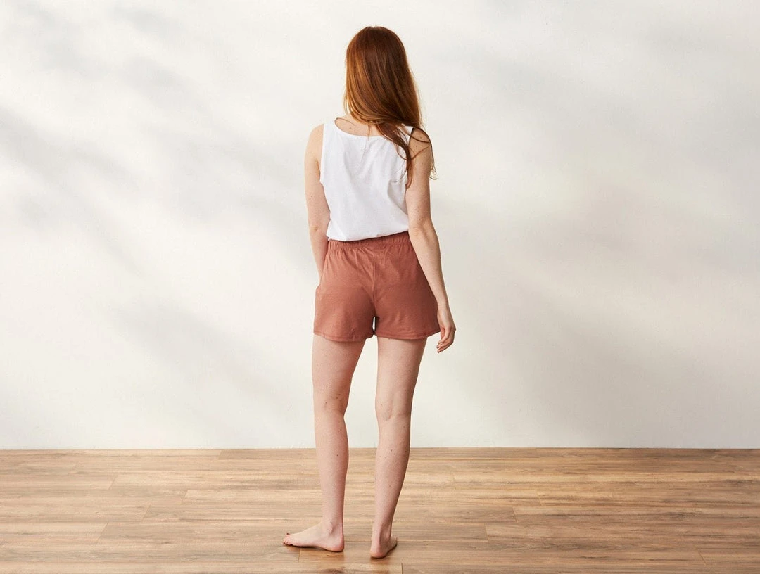Peached organic cotton jersey makes these shorts feel irresistibly soft against your skin. The relaxed fit is perfect for lounging, with a flat elastic waistband that’s stitched so it won’t roll or flip. Inseam Length: XS: 2.7″, S: 2.8″, M: 3″, L: 3.1″. Made Safe and Fair Trade certified.