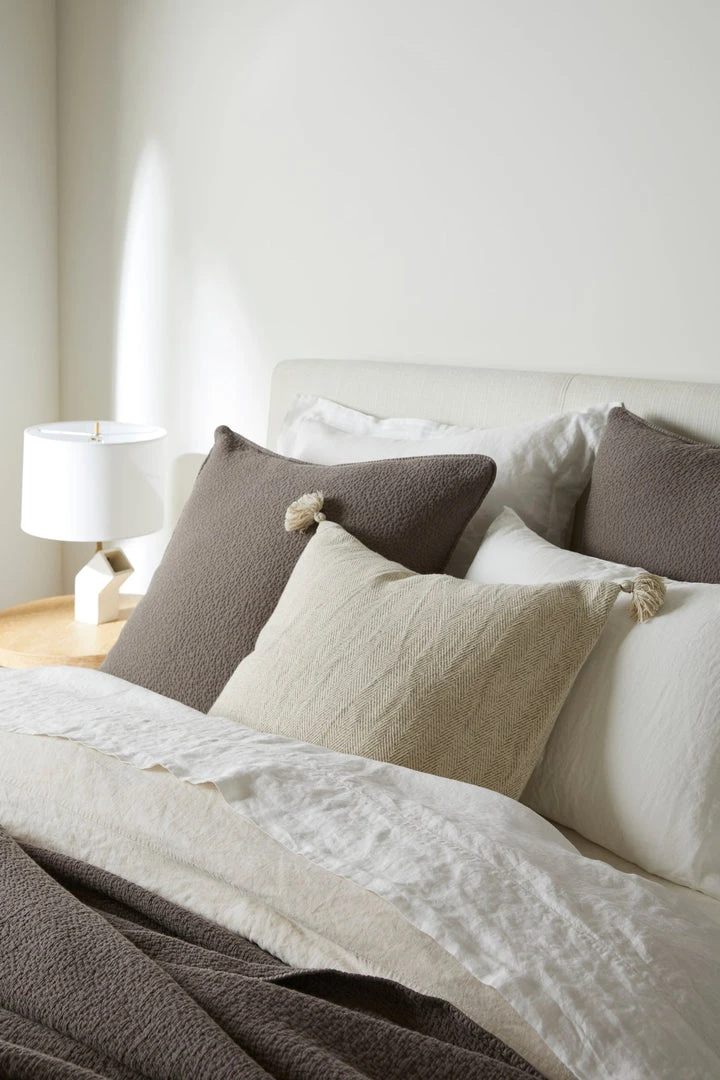 Inspired by quilted Kantha cloth, the Cascade matelassé shams have a light, lofty feel with an allover stitched texture for endless versatility and effortless layering for your bed. Crafted in Portugal from exceptionally fine organic cotton yarns and stone washing gives the fabric its soft and plush, pleasingly rumpled hand.