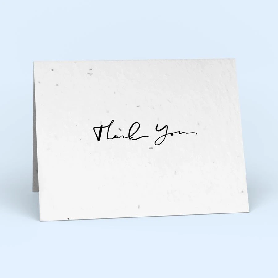 Keep sustainably made thank you notes on hand with this 10 pack. Watch your recipients light up when they realize that your meaningful words can grow a garden of wildflowers. Printed to order to reduce waste. Cards contain a non-invasive wildflower seed mix that grows Alyssum, Catchfly, Siberian Wallflower, Black-Eyed Susan, and Baby Blue Eyes.