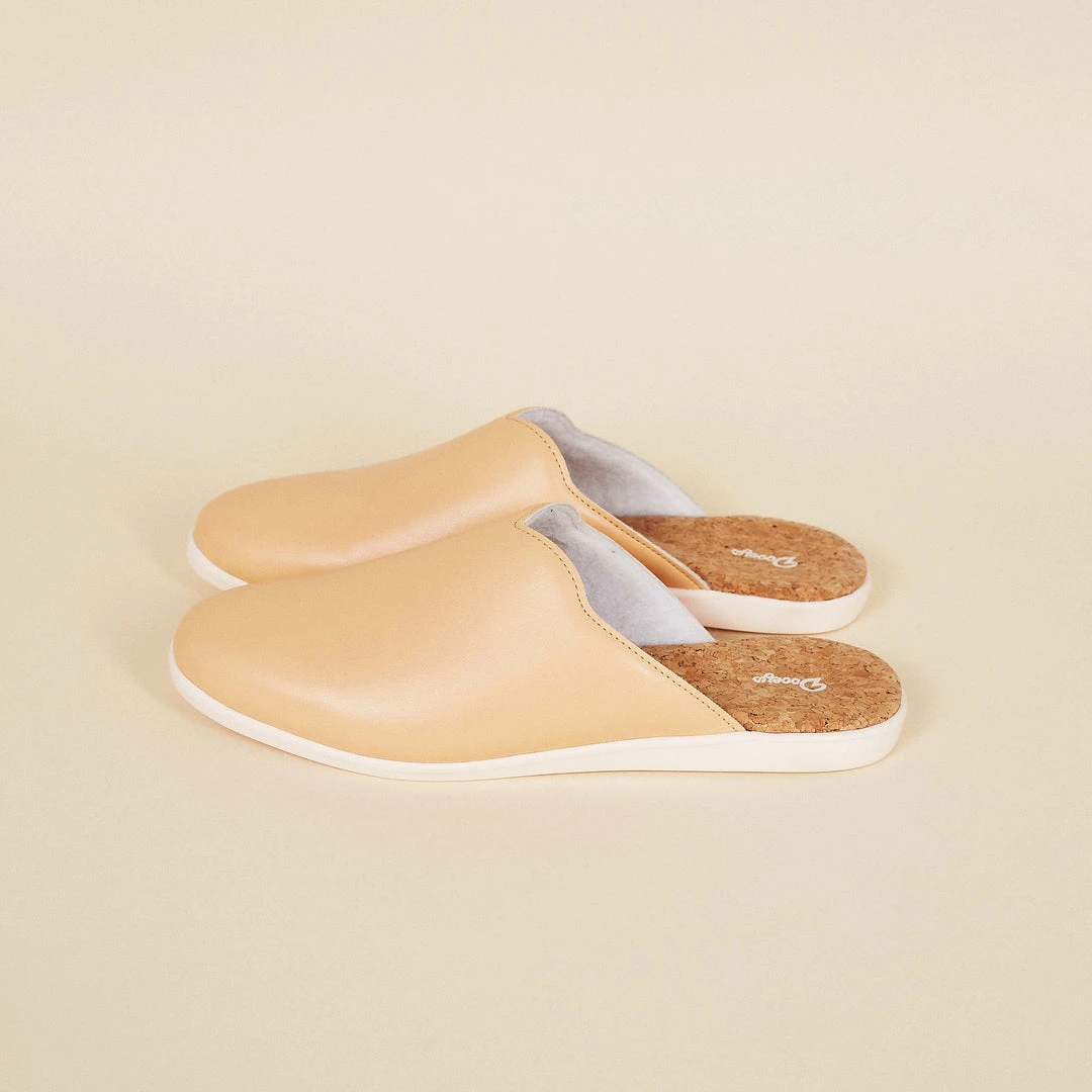 The Honey Beige House Mules are a go-to for any outfit and provide the support you need to conquer life at home and coziness you crave when kicking back. Effortlessly dress them up or down for wherever the day takes you at home. These slippers feature a vegan apple leather upper, recycled lining, natural latex and cork footbeds, and sugarcane soles. They’re great for hardwood and tiles floors.
