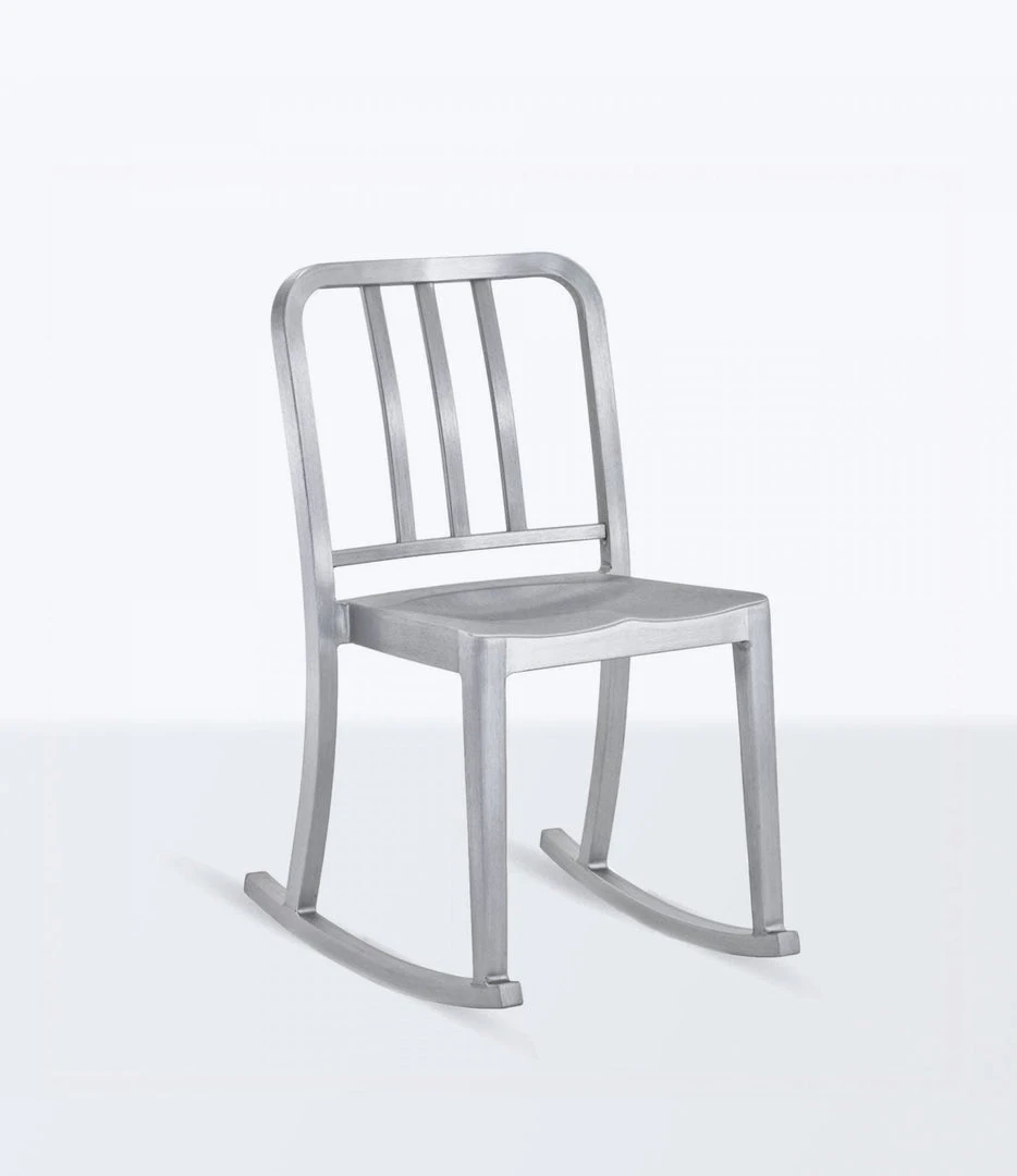 Heritage is a stacking chair designed by Philippe Starck, inspired by the original 1006 Navy.The rocking version was designed for the world famous Bon restaurant in Paris. Intended as a “sit up” chair for working and dining, it’s a symbol of Emeco’s amalgamation of utility and beauty.