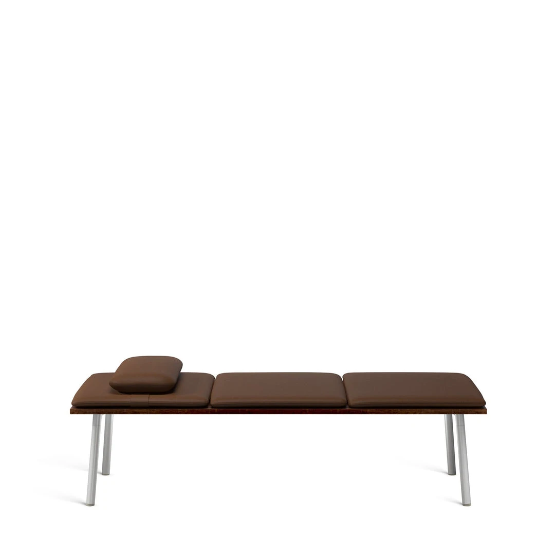 The daybed is the latest addition to Emeco’s Run collection, designed by Sam Hecht and Kim Colin of Industrial Facility. Built from the same solid wood tops and strong aluminum base as the Run tables, the daybed is completed by three cushions and a bolster. Run daybed is offered with a top in solid ash or walnut all sustainably sourced and crafted locally by Amish woodworkers in Lancaster, PA. The cushions are upholstered in a timeless selection of Maharam Bask leather or Kvadrat Hallingdal fabric.