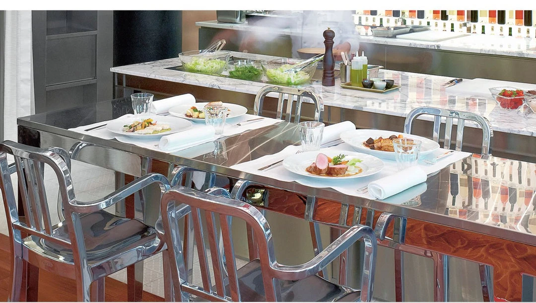 First built for use on submarines in 1944, the Navy Chair has been in continuous production ever since. With the famous 77 step Process, Emeco’s craftsmen take soft, recycled aluminum, hand form, and weld it- then temper it for strength. Finally, the chair is anodized for a durable finish. Emeco guarantees the Navy Chairs for life.