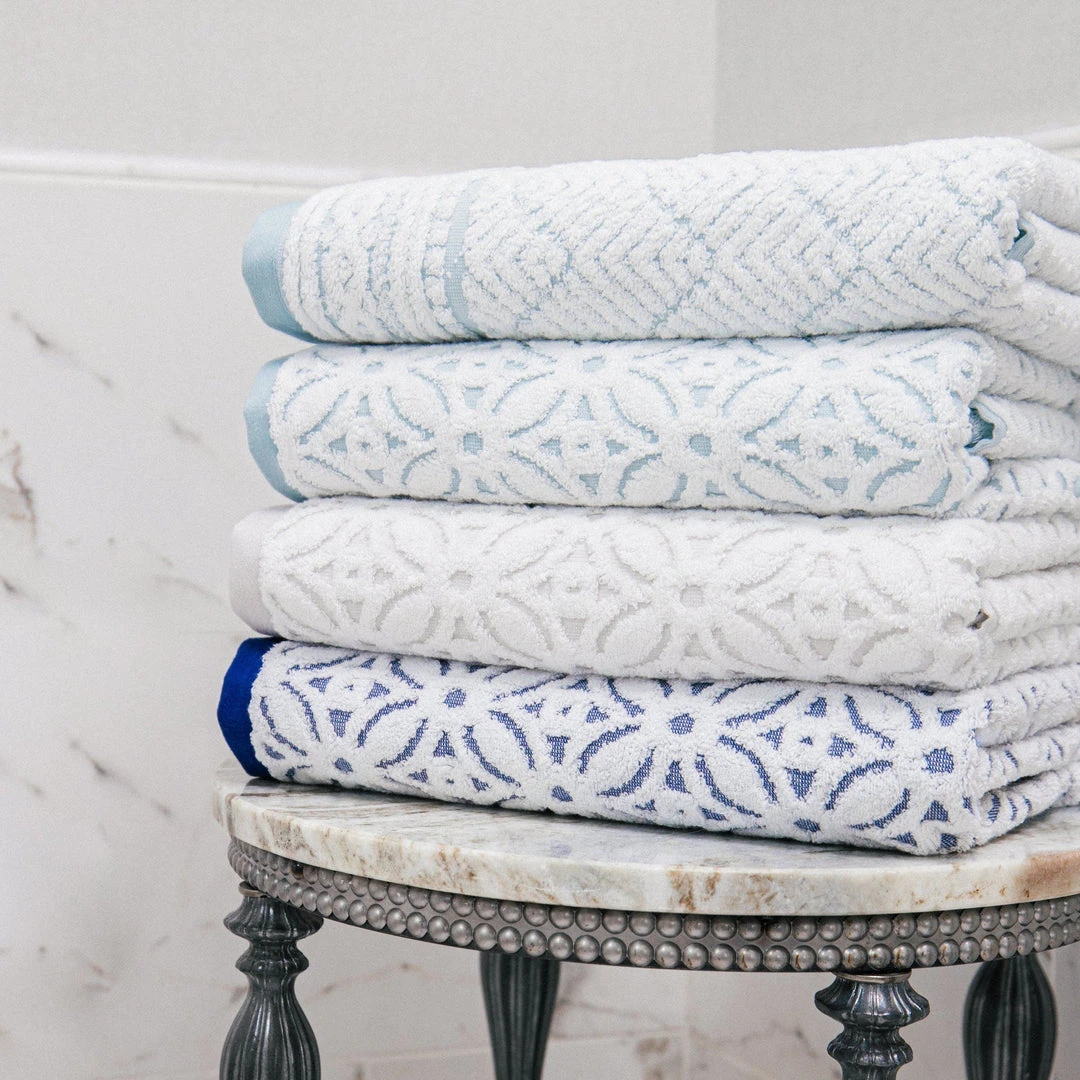 The Prague Bath Towels are luxurious, plush organic cotton towels with designs inspired by the city of Prague. These cheerfully colored and patterned towels are sure to elevate your bathroom while providing exceptional quality and comfort.