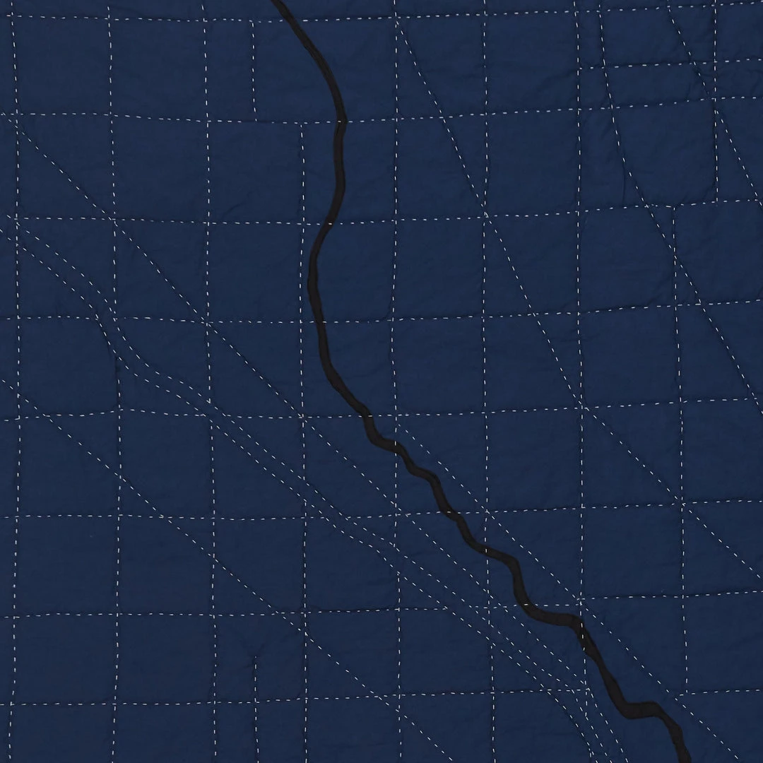 The Chicago Map Quilt features the Windy City hand stitched on organic cotton, ideal for curling up with a cup of coffee on a chilly day. Style it on your bed, reading chair, or couch, or hang it on the wall as a tapestry.