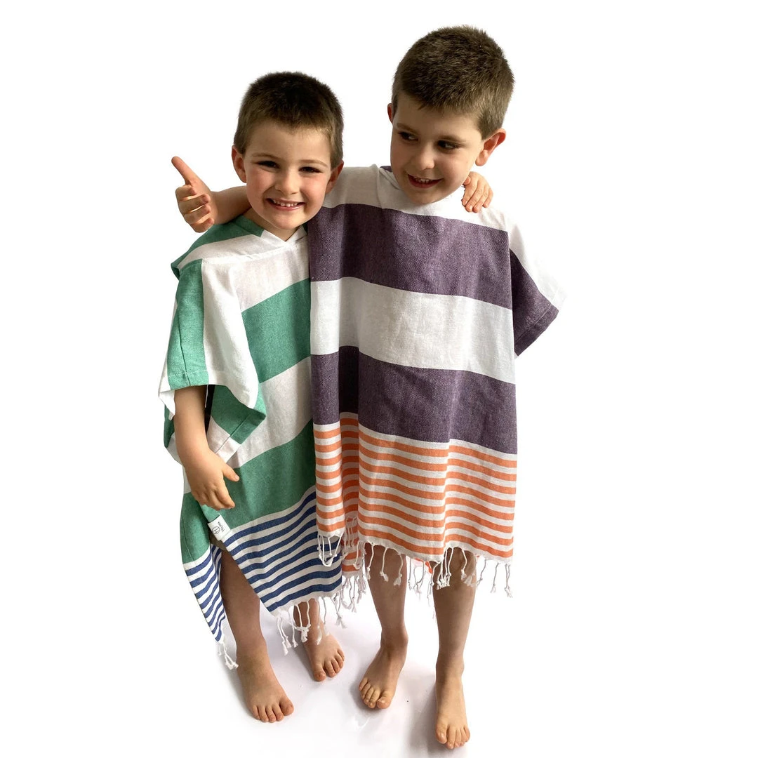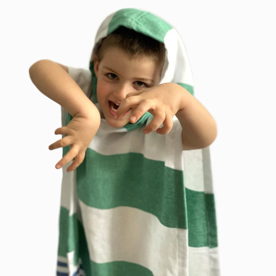 Hilana hooded ponchos are a real game changer for summer days by the pool, at the beach or after the bath. Ultra absorbent and quick dry to warm them up fast. Made from recycled cotton, durable versatile and super soft, keeping children safe from the sun.