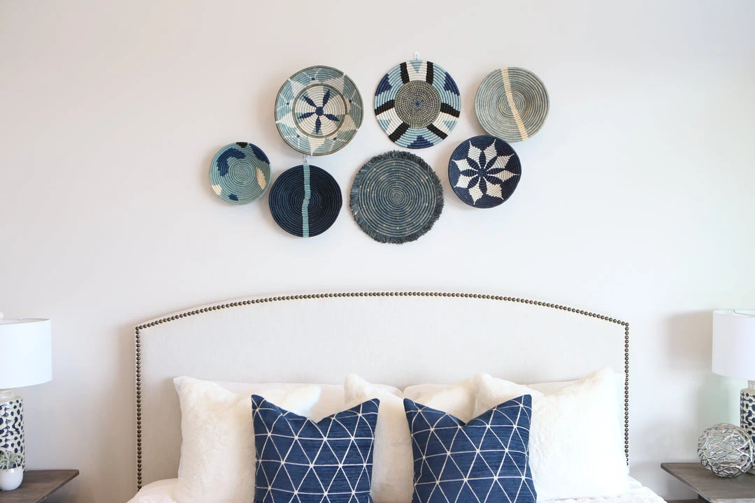 Intricately crafted with timeless tradition, this carefully dyed raffia fiber and sweet grass large bowl makes a stunning statement piece. Basket has a hang loop on the back for wall decor and is food safe for serving.