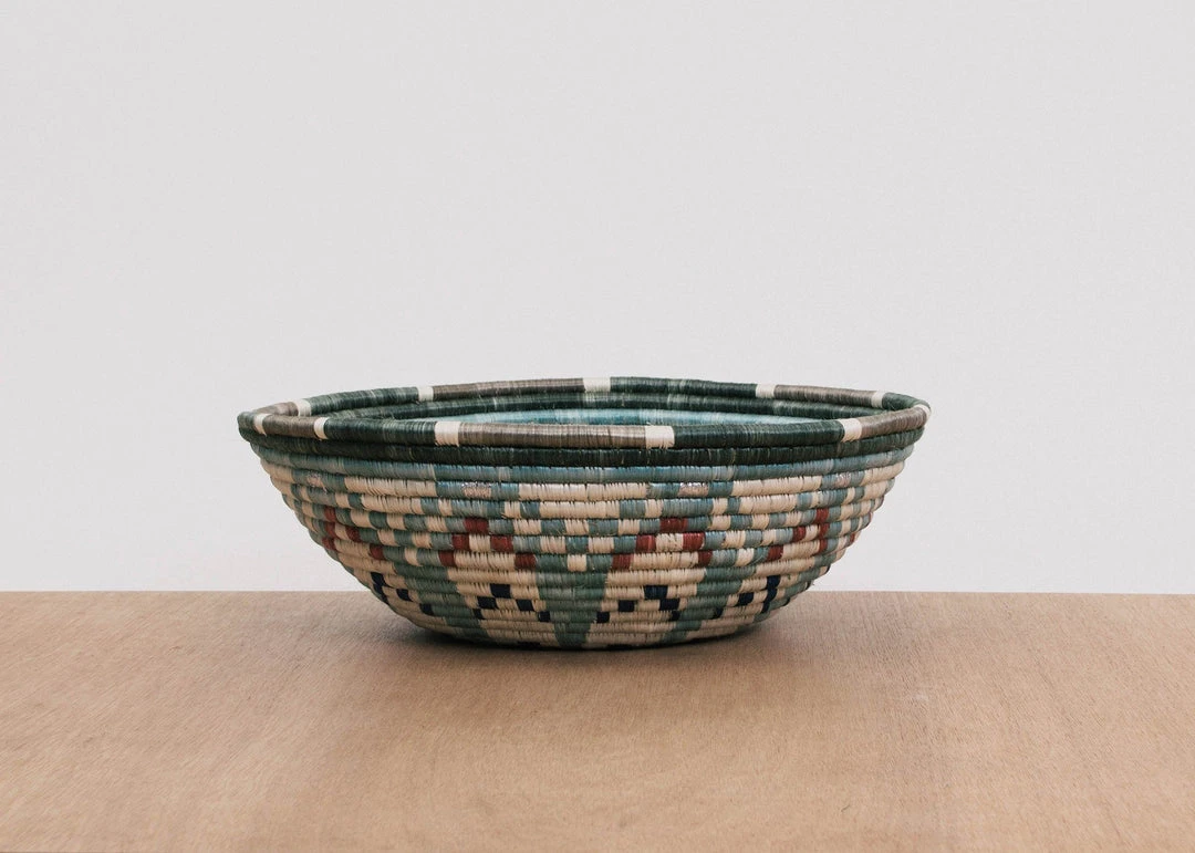 The sunburst pattern on these baskets is known as the “hope” design. Reflected on the Rwandan flag, this sunburst images stands for the county’s collective hope for a new dawn and brighter future. This design means a lot to the weavers, as each basket they sell increases their chances for a better life. Style it on a shelf for additional storage or add it to your coffee table. This extra large bowl is just the right size for a fruit bowl, center piece, or wall hanging.