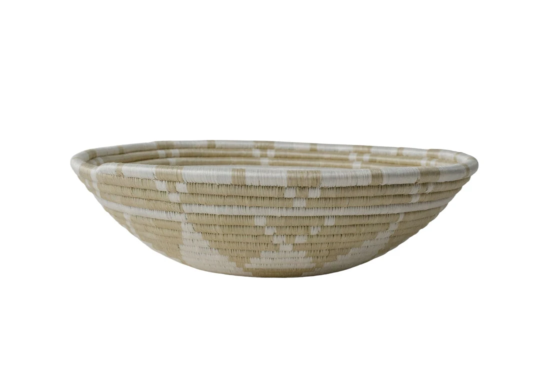 Made of the highest quality natural fibers in an ethical, fair trade environment. These delicately textured and woven baskets were made by groups of women in intimate communities across Rwanda where raffia is wound stitch by stitch around a small sweetgrass bundle.