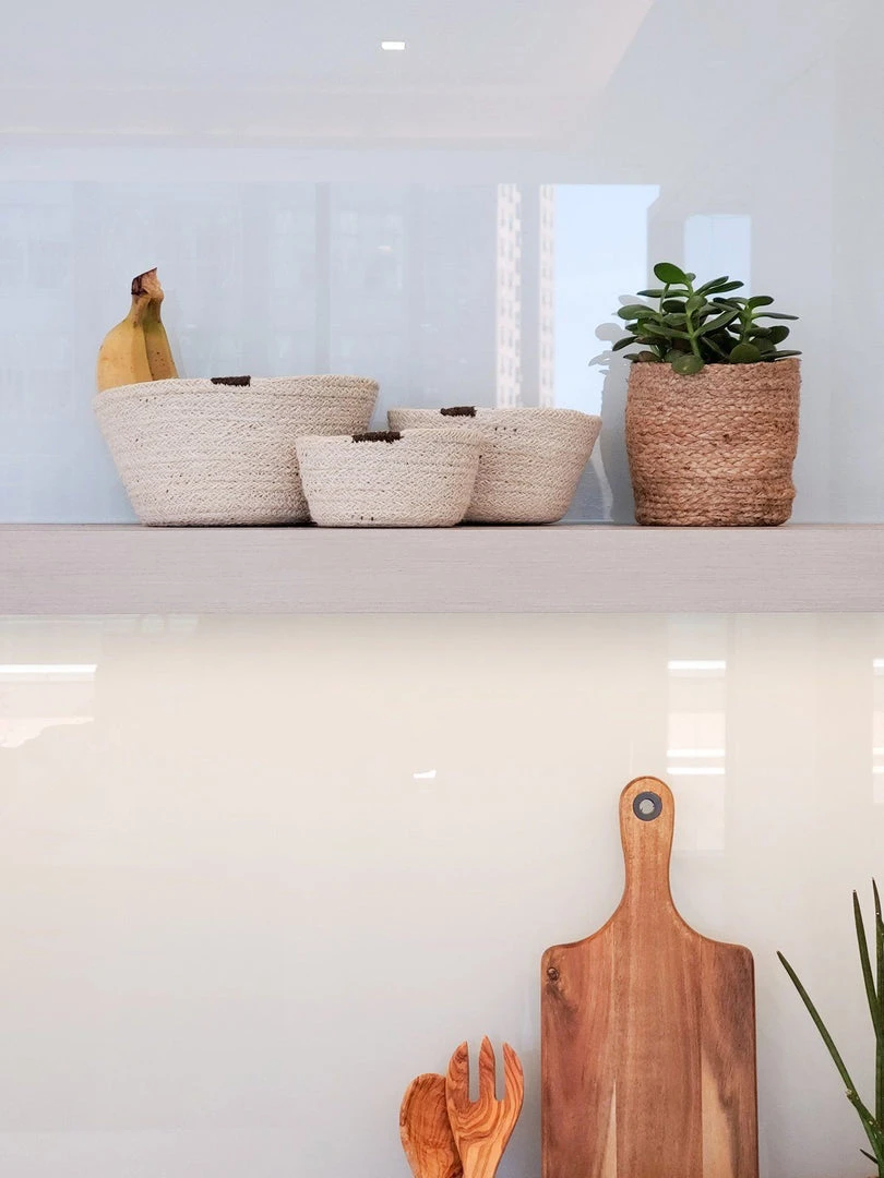 A set of three woven jute baskets in varying sizes. Providing versatile storage for every room in your home. Each set is made with ethically sourced, natural materials and handwoven in a fair trade environment. Variation is celebrated with handcrafted products.