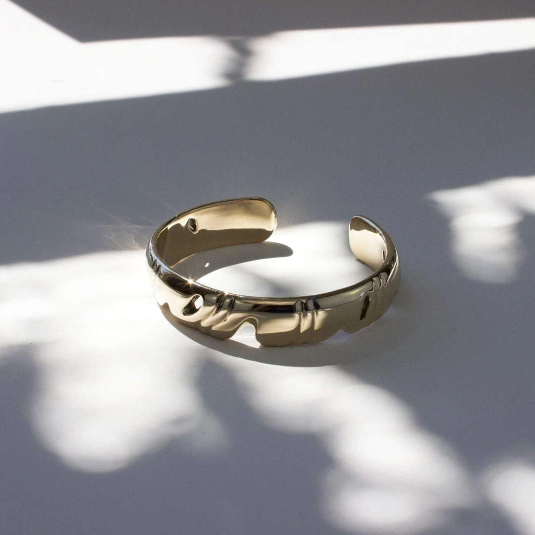 Inspired by the fenestrations of the Monstera plant, the Abstract Monstera Cuff is hand-carved in wax and cast.