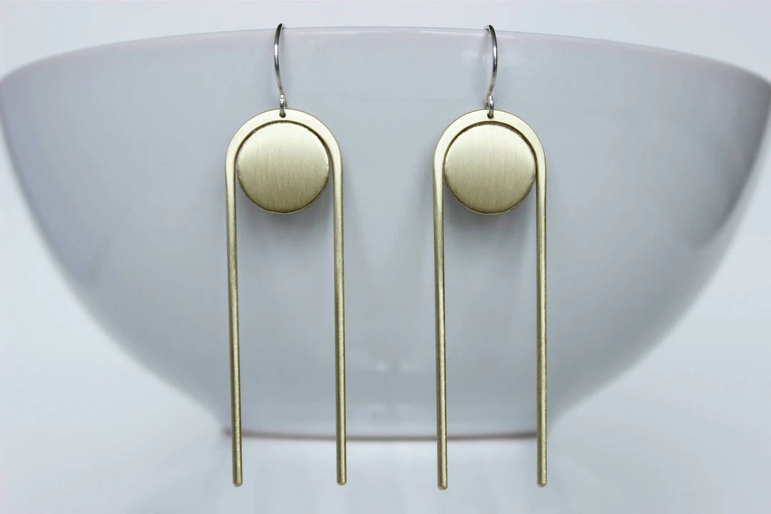 These architectural statement earrings are sculpted and carved in wax by hand, then cast in bronze. Easily dressed up for a night out or worn with a t-shirt and jeans to add shine to a casual look.