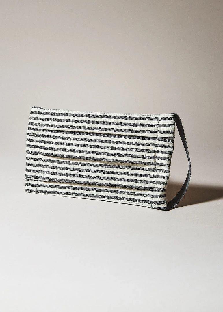 We chose form-fitting, expandable pleats for the widest amount of coverage, and comfortable elastic that helps the mask stay in place all day long. Pleats allow for the most coverage from the space below your chin up to the bridge of your nose. And strong elastic ear loops retain their stretch wear after wear. When you first try on your face mask you’ll notice the pleats are quite crisp. People with smaller faces may notice the sides of the face mask may be slightly raised or puckered out. If this is the case, and to ensure your mask is form-fitting, we recommend following the care instructions below and washing and drying your mask before wearing. After washing and drying, the pleats will significantly relax and the face mask will better form to your face.