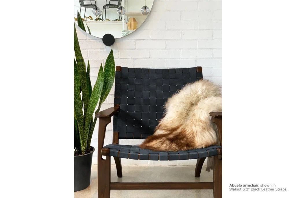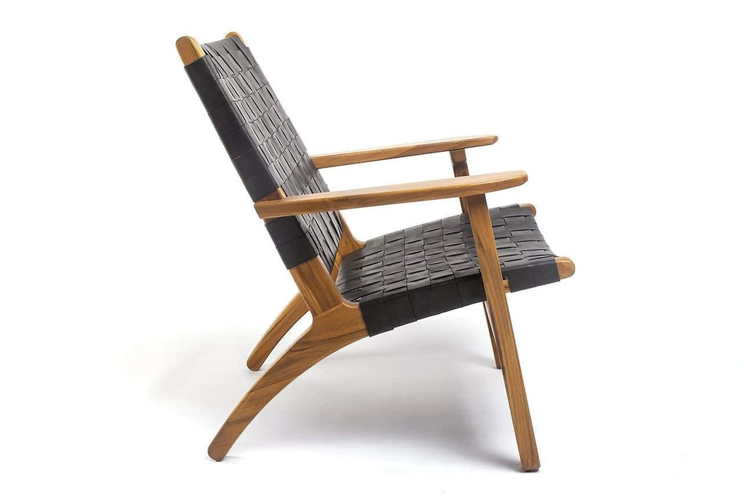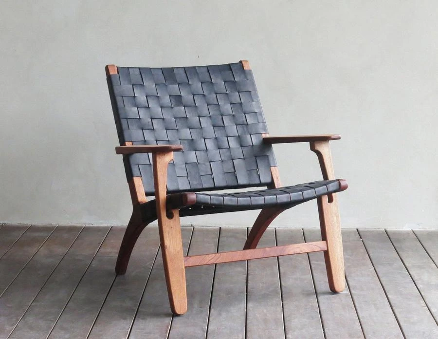 Stylish hardwood and natural leather lounge chair inspired by Danish designs of the mid-century modern period. These chairs make a striking addition to any living area and are a true conversation piece due to their Nicaraguan origin, hand craftsmanship, and authentic sustainability.