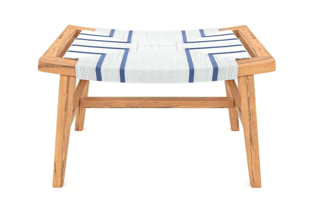 Handcrafted from solid sustainably harvested tropical hardwood, the Masaya Ottoman features the handwoven Ruben pattern. Available in Rosita Walnut, Royal Mahogany, Teak, and Burnt Teak. Pair with the matching lounge chair to complete the look.