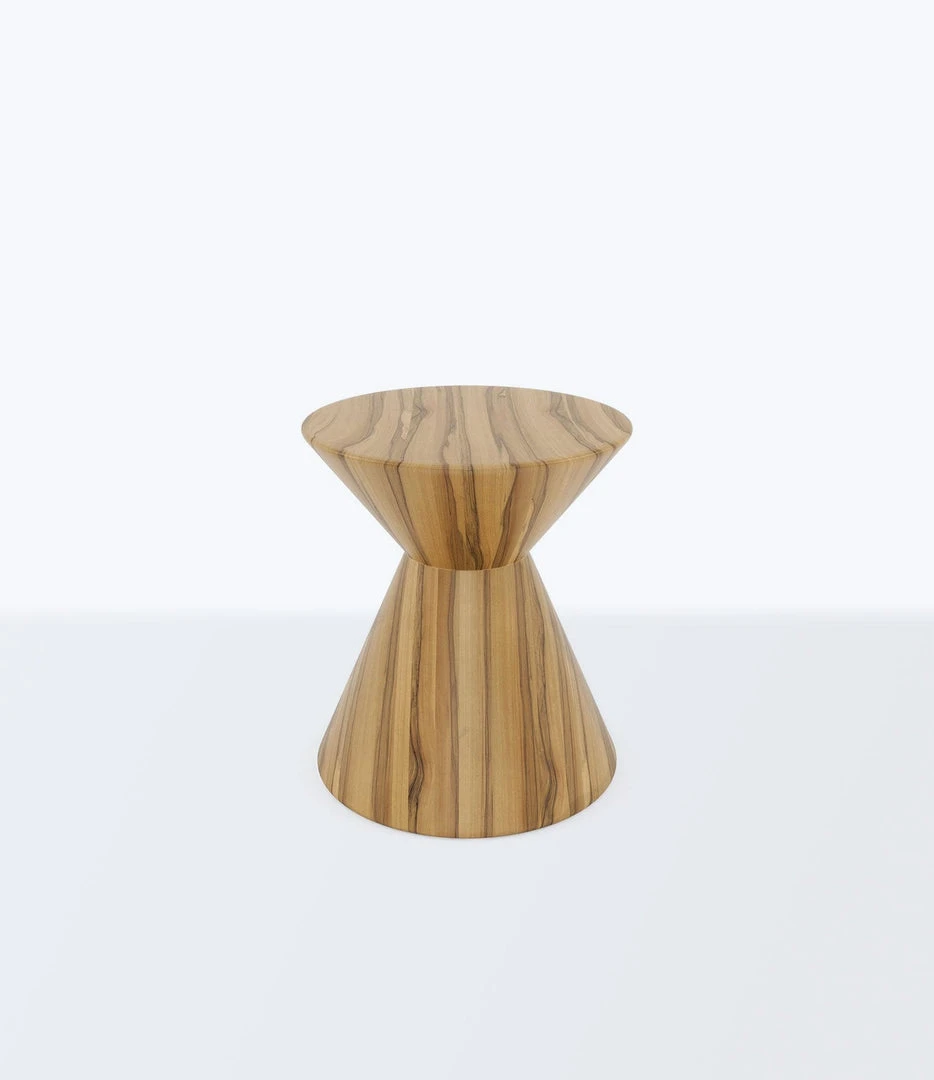 A cultural piece of wooden furniture inspired by the ”trompo” game. Handcrafted from solid, laminated, sustainably sourced Teak. The character and grain of wood naturally vary, making each piece completely unique.