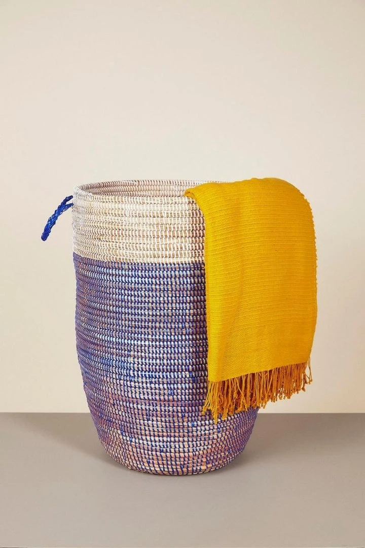 This two-tone basket adds a minimalist touch to your storage solutions. It has both practical functionality and contemporary style. Handwoven by artisans in Senegal with naturally durable grasses and reinforced with recycled plastic threads.