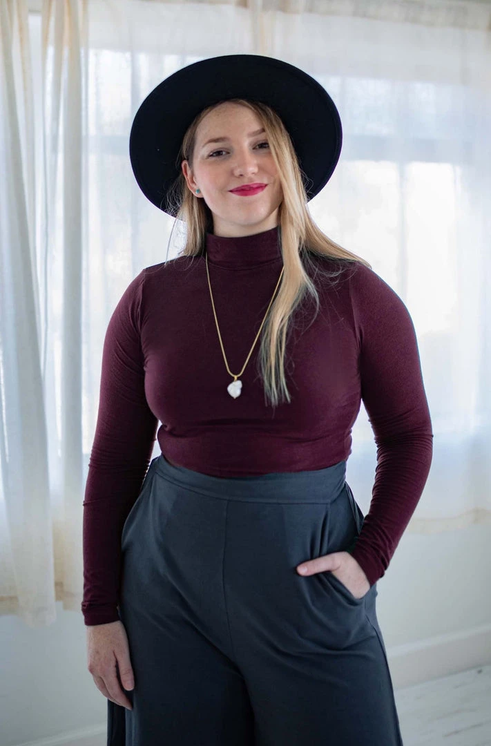The layering piece you’ve been waiting for – a flattering mock-neck long sleeve to wear underneath a jumpsuit or paired with your favorite bottoms. Ultra-soft, not too fitted and not too loose.