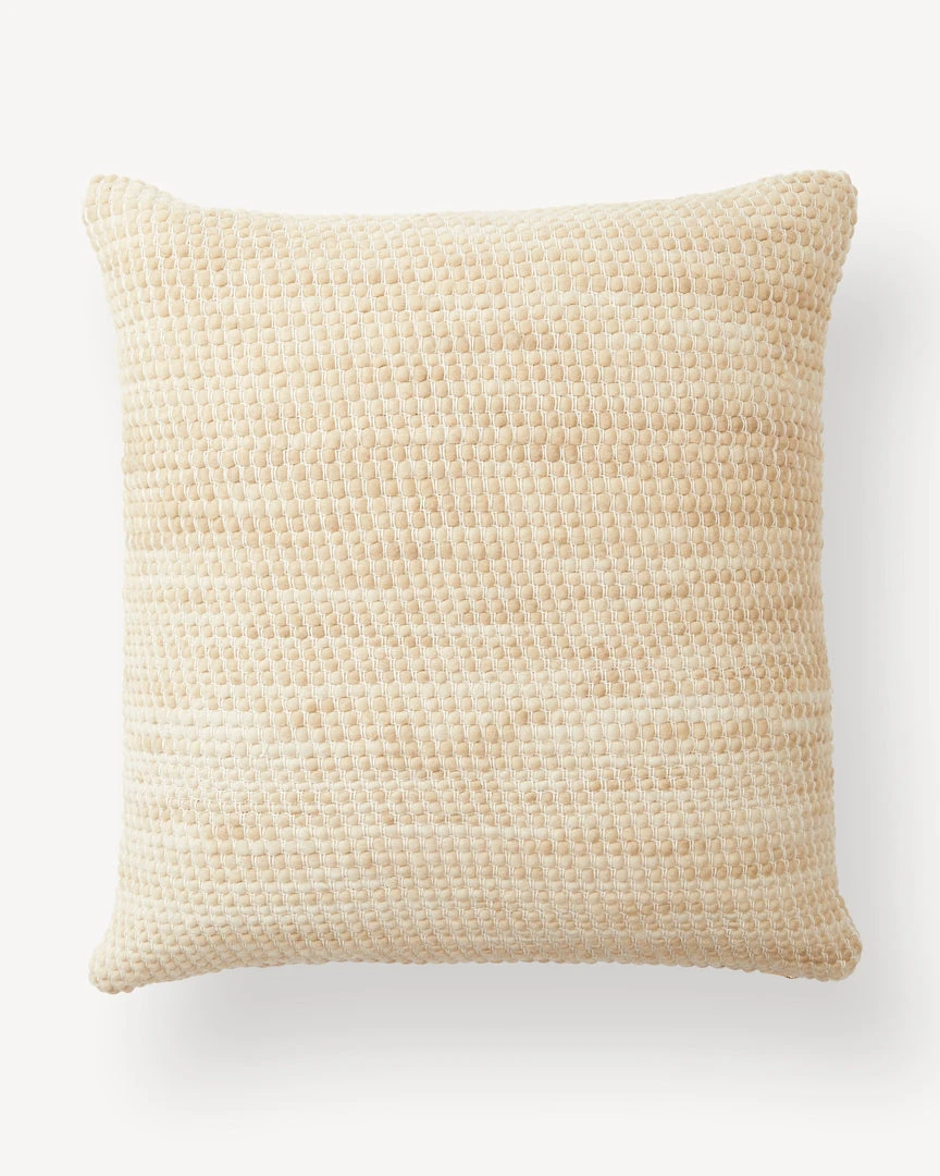 The texture of the Sheila Throw Pillow was inspired by the ruins of Huaca Pucllana and named after Sheila Hicks. An easy way to incorporate texture into any room. The neutral wheat color is 100% natural, derived from plants and flowers.