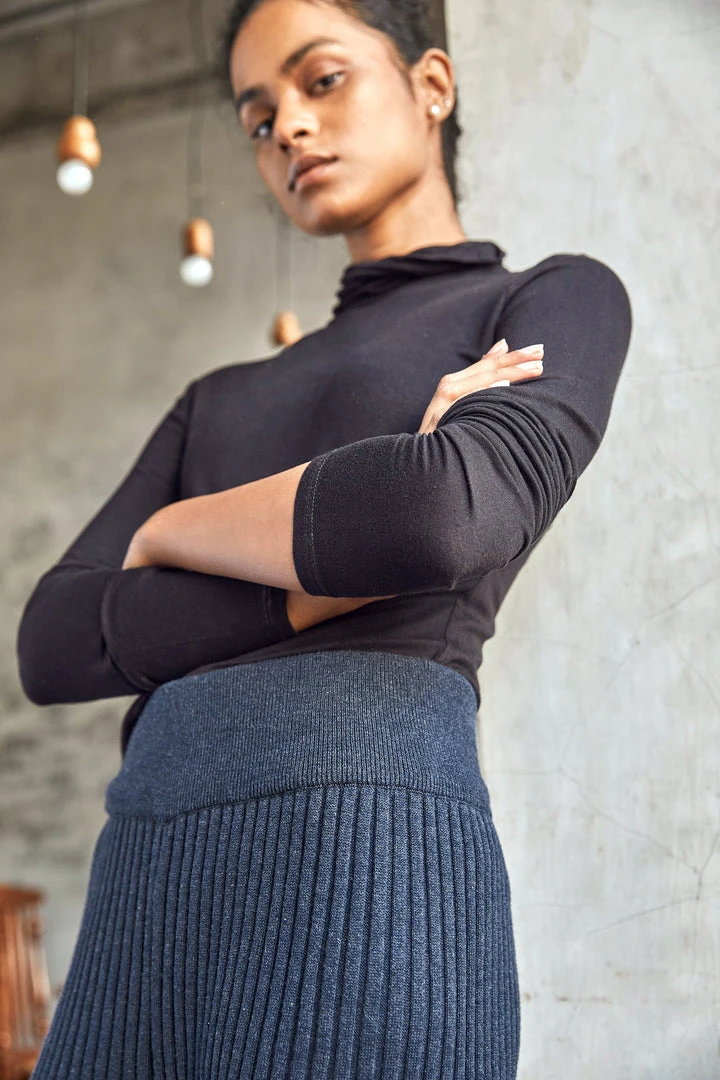 The ribbed knit Indigo Flared Pants have an elevated casual look to be dressed up or down.