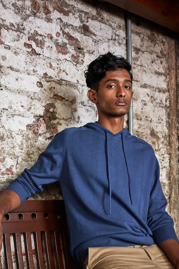 The Knit Pullover Hoodie is a cozy everyday piece with an elevated look. Made from organic cotton knit with a relaxed fit, drawstring hood, and ribbed trim details. This hoodie is knit from yarn into the exact shape of the finished product, eliminating fabric waste and making this a zero waste piece.