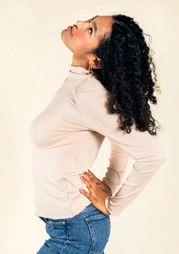 The Norma Ribbed Turtleneck is cozy and will quickly become your go to top on cooler days. Made from Modal, a super soft, earth friendly material made from beech trees. The fabric has a natural stretch, giving you a relaxed fit. We suggest you size down if you’d like a more fitted feel.
