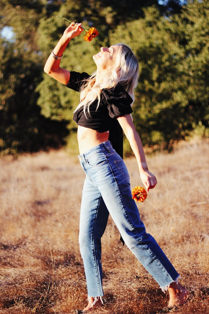 This high rise straight is modernized with comfort stretch, a high rise contour waistband, and Porter Blue’s iconic sun embroidered on the wearerโs back pocket. The hem is cut raw and the inseam hits above the ankle bone at the 7/8โ length. Will vary depending on height.