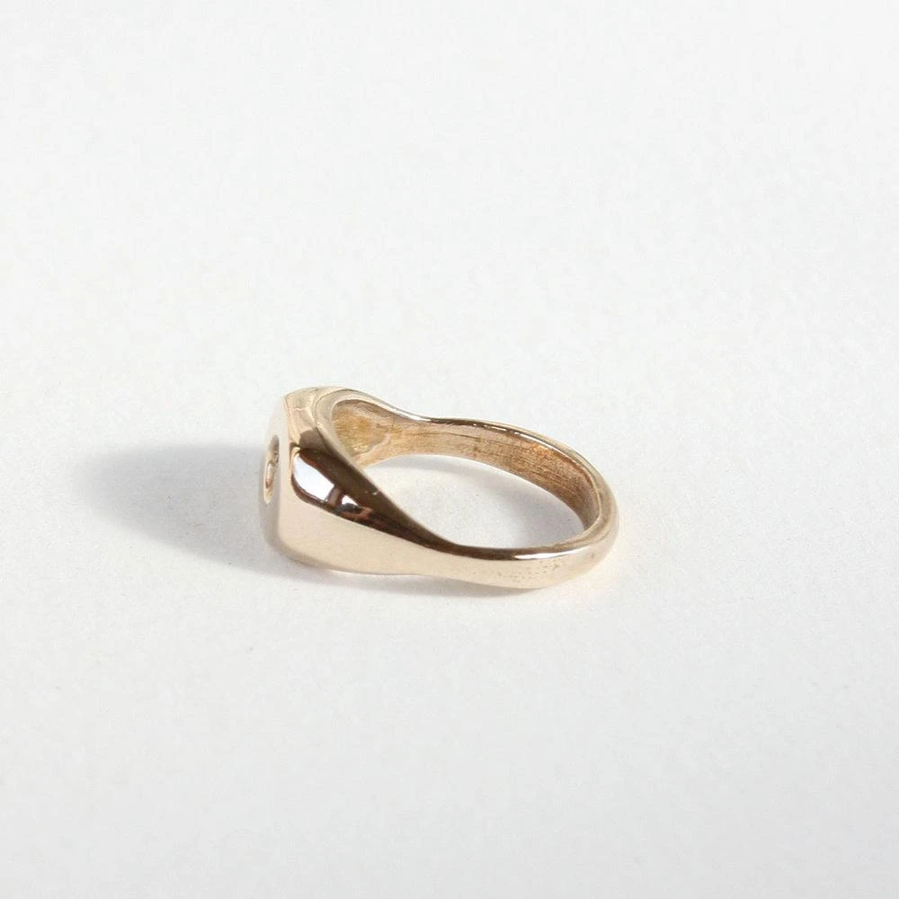 The Dimple Signet is available in cast bronze or sterling silver and is polished to a high shine.