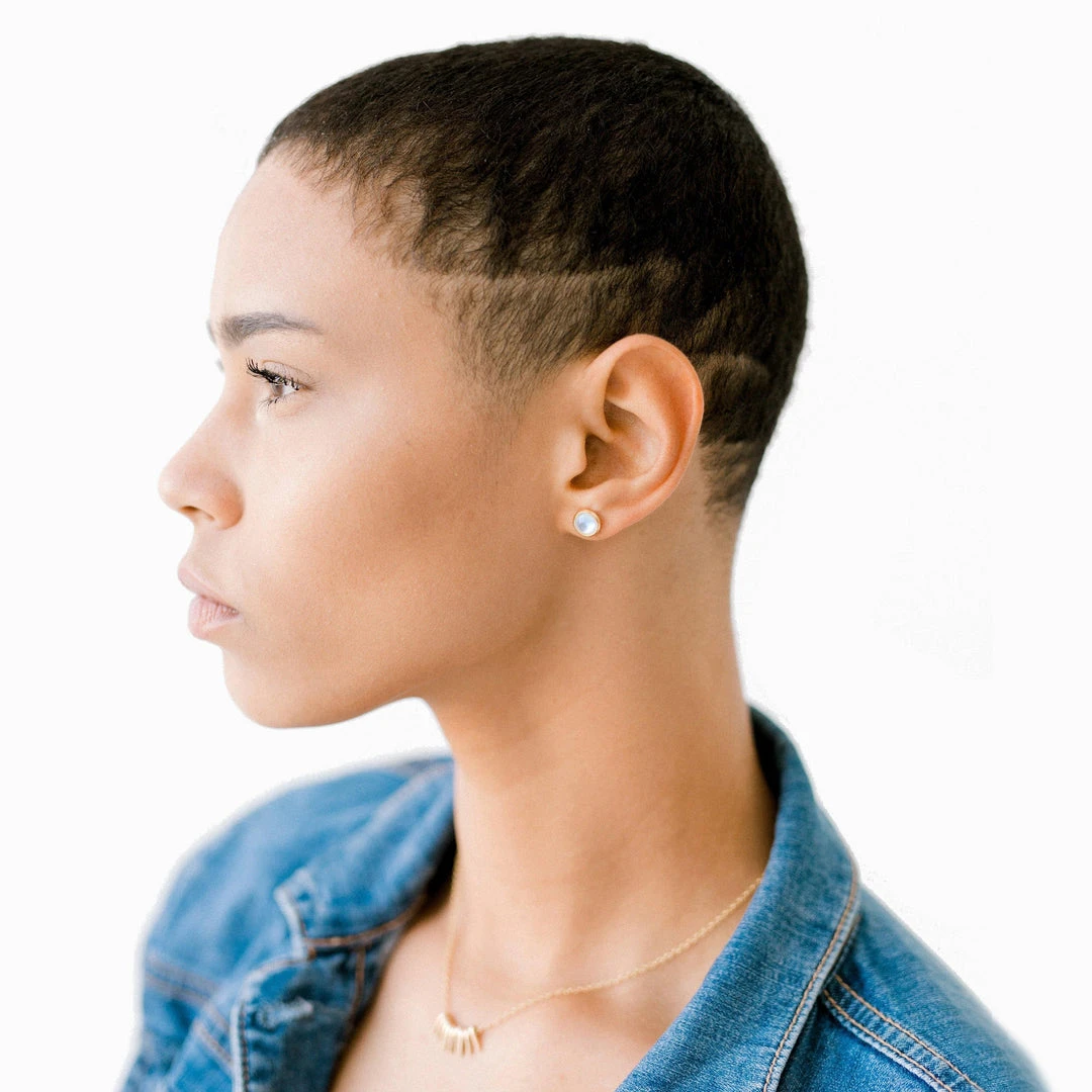 These minimal, mother of pearl cabochons made themselves in the ocean. When you take a deeper look you’ll notice they have a little iridescent twinkle. These earrings will quickly become your go to pair.