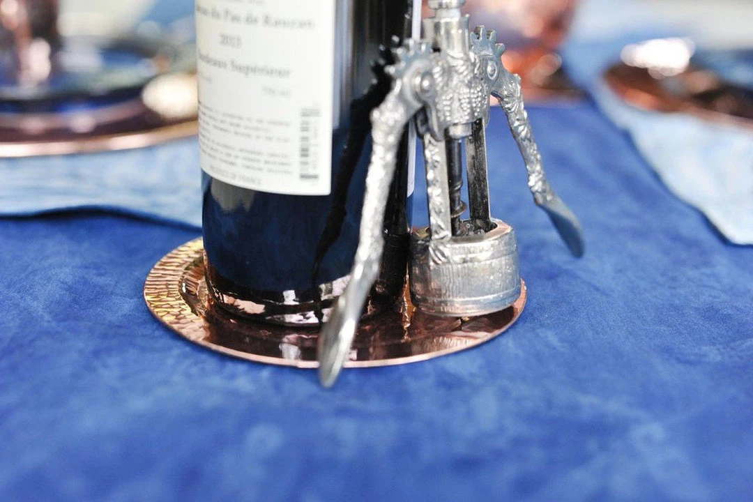 Napa Bottle Coasters, are perfect for any kind of bottle service, flower vase or candle base. This hand hammered beauty casts a warm intimate light, protects the table surface from drips and adds an elegant detail to a gourmet dining experience or even the most casual backyard hang.