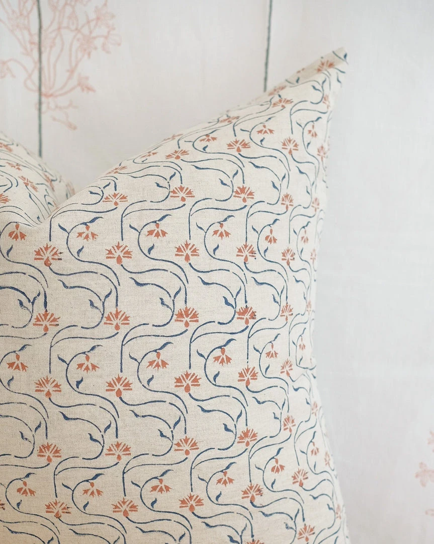 The Saba Throw Pillow is hand block printed by artisans in a small village outside of Jaipur. The bright, joyful design is inspired by the romance and poetic feel of Udaipur. Subtle nuances are to be expected with handcrafted textiles.