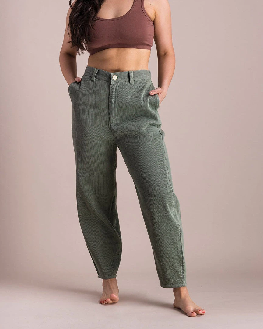 The Sage Balloon ultra high rise pants are both versatile and comfortable, making them easy to style up or down, bringing you from day to evening. The “Balloon” namesake comes from the volume that forms below the knees where the fabric tapers to meet the ankle.