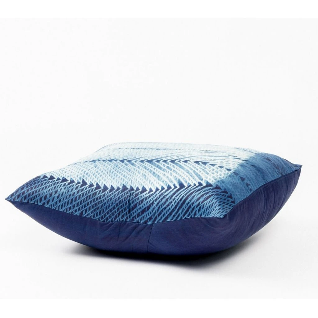 Modern elegance goes hand in hand with Ara Indigo cushion. Ethically handmade by skillful shibori artisans in India, the natural dyes are sourced from local farms. Wooden buttons are used as closures in the back. Each cushion comes with an individual envelope-shaped pouch made with canvas cotton and a natural wood buttoned closure.