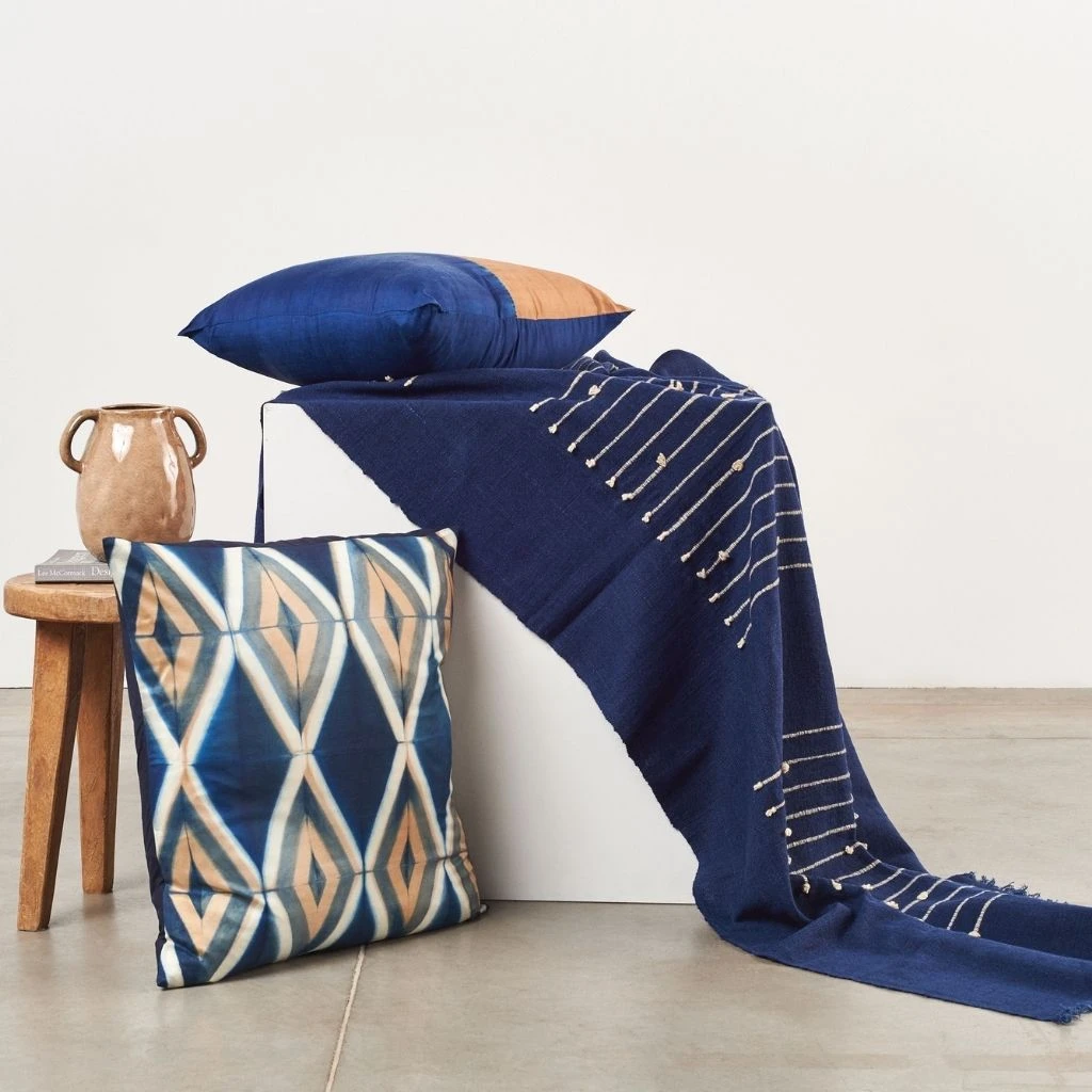 The Tisa Silk Pillow is a luxurious, handcrafted throw pillow with a unique geometric Shibori dyed pattern to give your space a mid century feel. The symmetrical pattern is dyed by master artisans in India using premium quality, organic dyes that are sourced locally. The front of the pillow features the pattern, while the back is dyed solid in the main color. A Down filler insert is included so the Tisa Silk Pillow is ready to style. Small batch production ensures high quality and less waste.